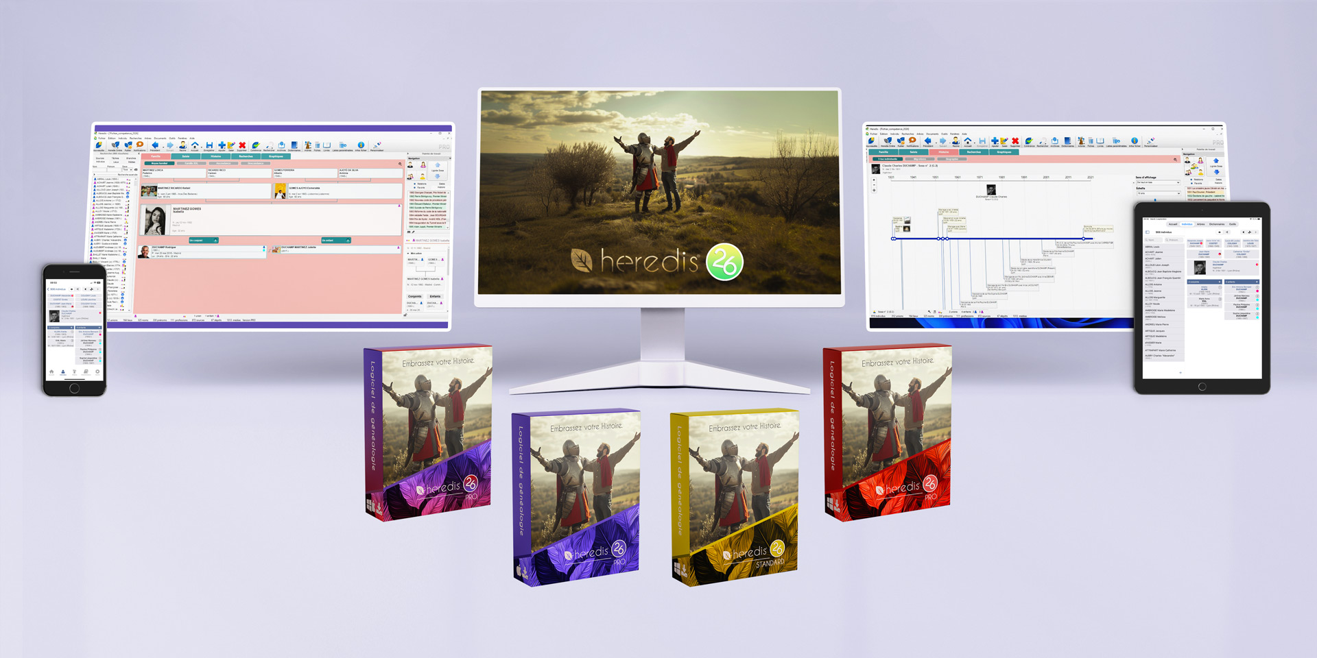 Le logiciel de généalogie Heredis est votre meilleur allié pour vos arbres de famille et vos recherches généalogiques. Au total, vous trouverez plus de 200 fonctionnalités pour créer, enrichir, partager et raconter l’histoire de vos ancêtres. Une richesse fonctionnelle inégalée !